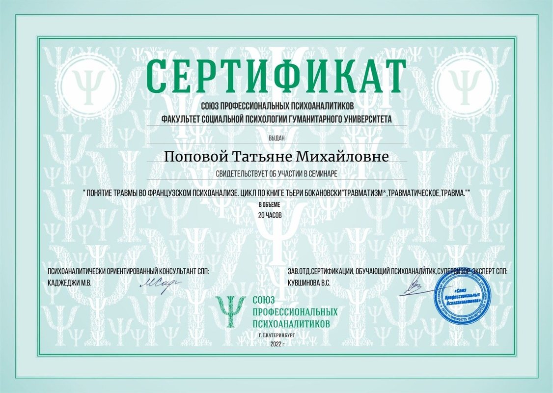 Подробнее о компании Кабинет психолога Татьяны Поповой